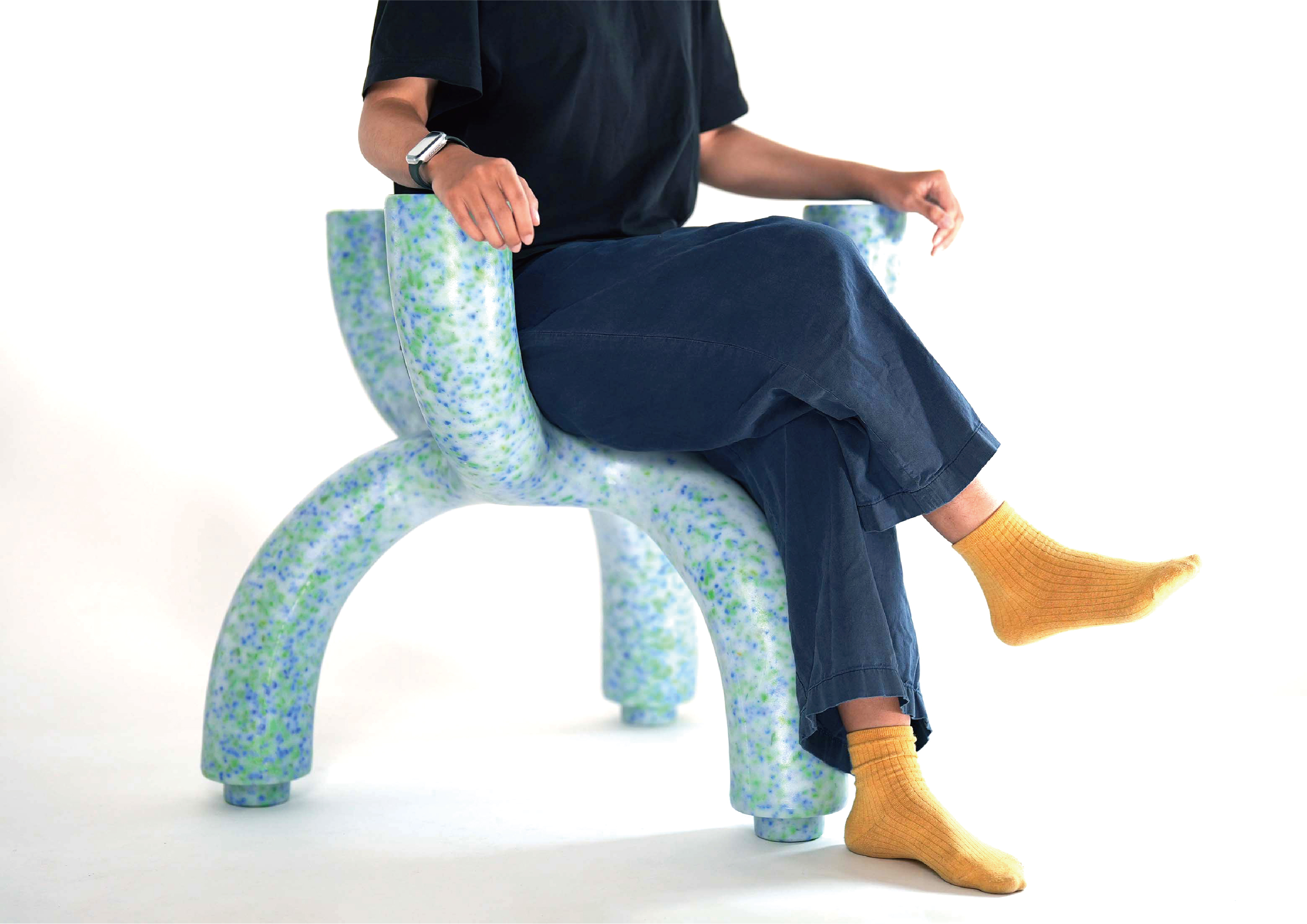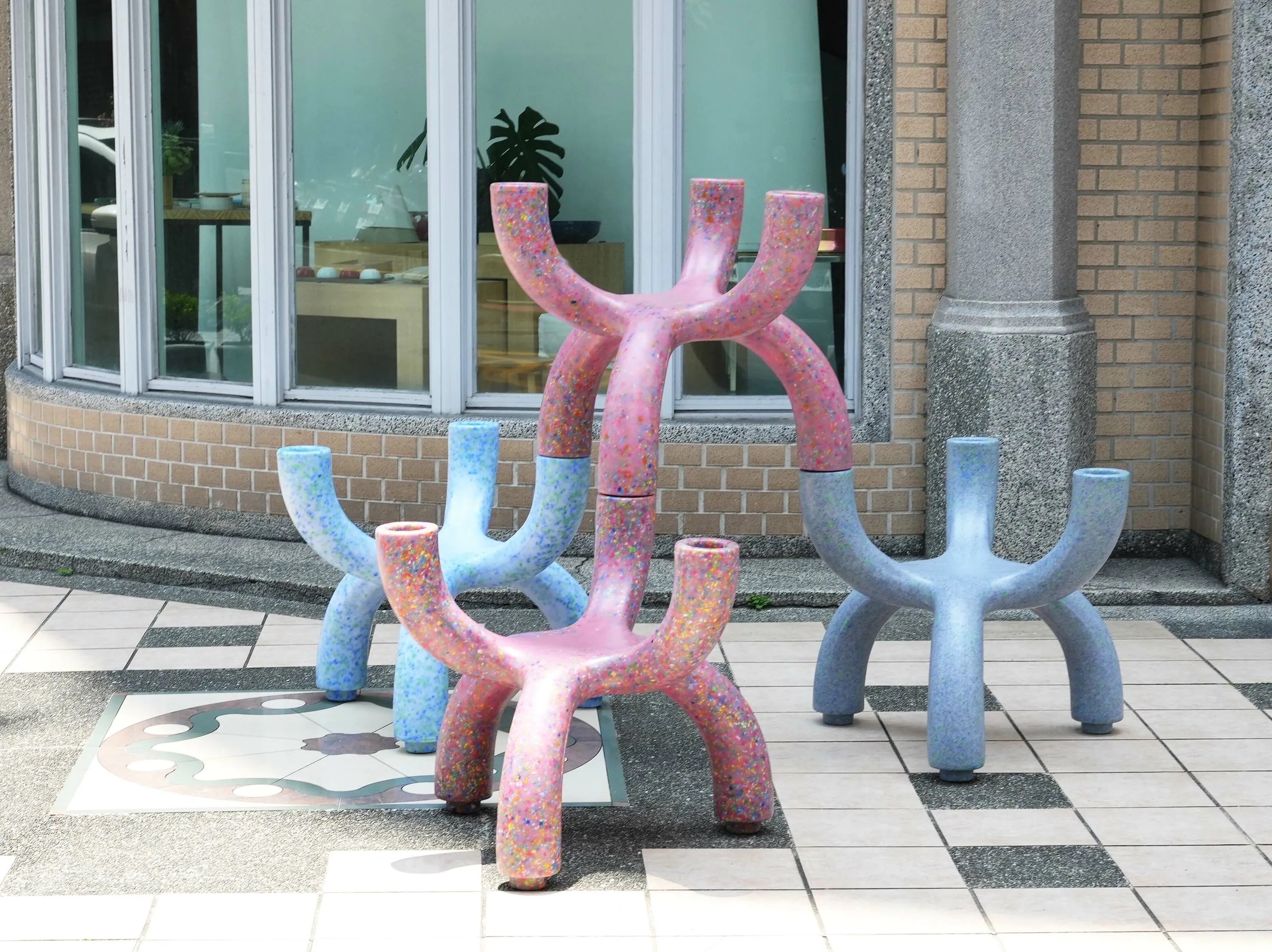 以珊瑚概念出發,將回收「廢棄玩具」再製產品,並藉由循環經濟與設計思維,讓塑膠持續在產業系統中循環,進而實踐永續發展。珊瑚椅設計採雙面不同高度設計,一面低椅腳供孩童使用,另一面高椅腳供給成人使用。模組化延伸設計,可將椅子堆疊形成大型共享椅。