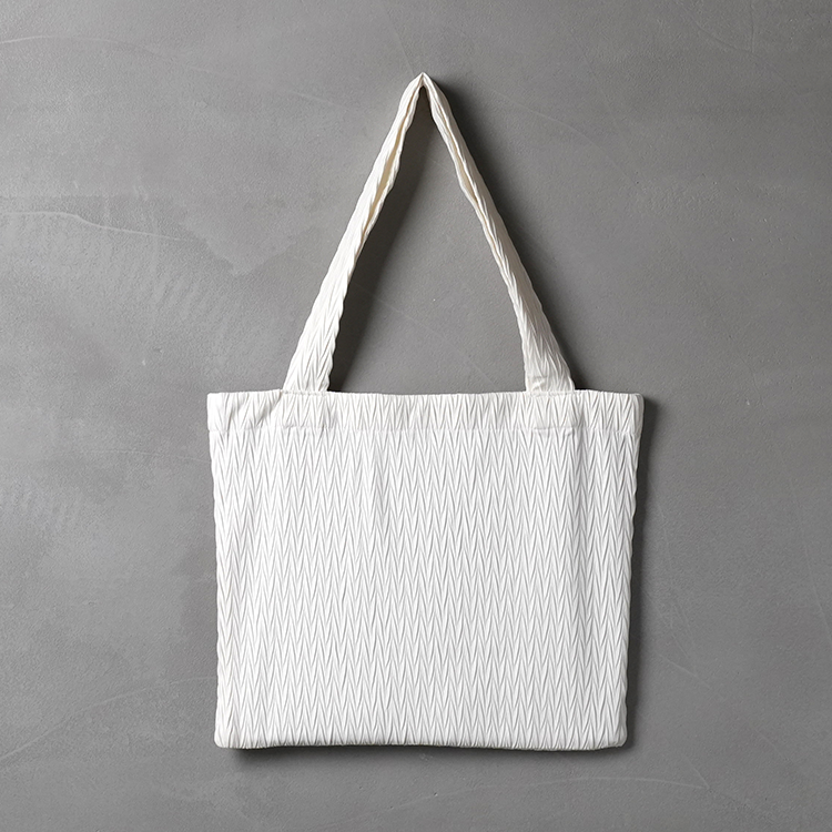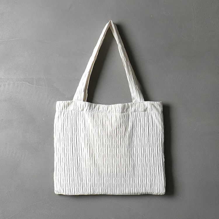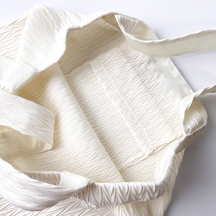 布面以壓褶的設計方式呈現視覺豐富且具功能性的設計風格,本體不印刷、不染色也盡可能的不浪費布料。
