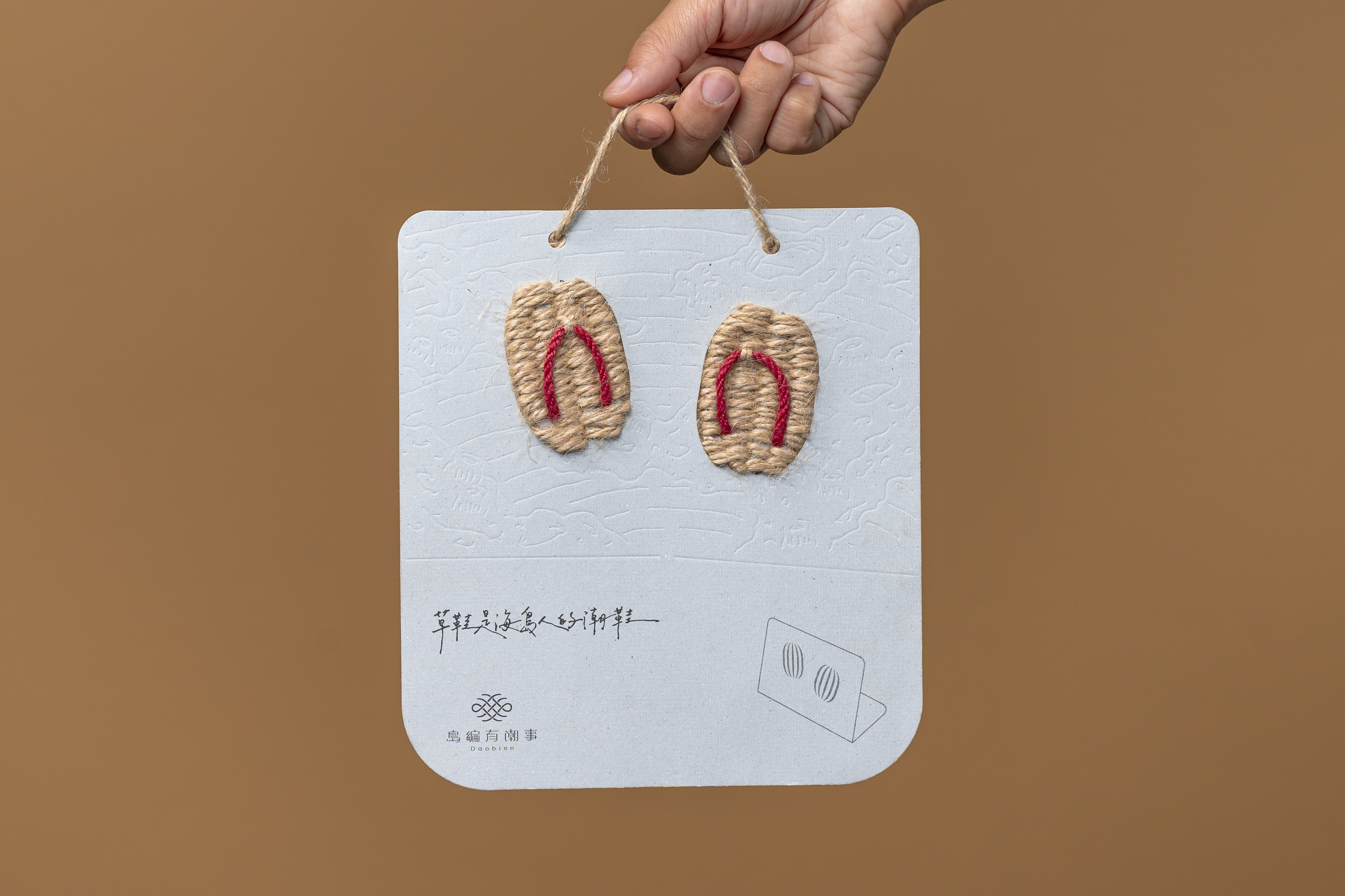 傳統草鞋是澎湖人在潮間帶採集食物的工作鞋,澎湖人與大海連結的生活必需品。 做一雙傳統草鞋編織需要6小時,不易將這項傳統工藝文化有效推廣給大眾。 因此,我們設計一款草鞋編織卡片材料包,內容附有紙卡、線材、在地潮間帶物件貼紙、信封袋、教學影片連結小卡,可以透過10分鐘教學影片,輕鬆學習這項草鞋編織技法,完成後可利用貼紙和信封袋,將自己編織的草鞋卡片寄送給朋友。 以卡片為傳遞文化的媒介,不受體驗的時間和空間限制,藉由這項草鞋編織材料包商品,傳遞澎湖人依海而生的生活技藝,也傳達「步步平安」的祝福給朋友,讓更多人認識草鞋是海島人的「潮」鞋。